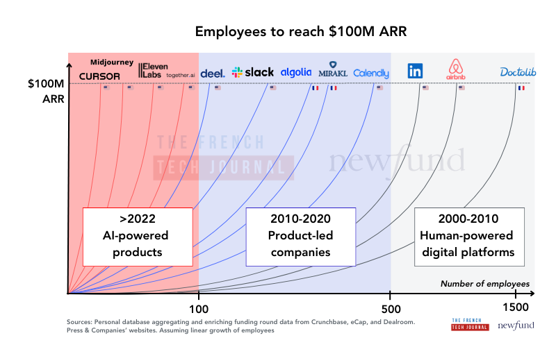 The rise of AI-native startups is changing the playbook for company building. In Silicon Valley, startups are reaching $100M ARR with teams as small as 20 to 50 people, leveraging AI to drive efficiency at an unprecedented scale. This shift is forcing entrepreneurs worldwide to rethink how they structure and scale their companies, including in France.