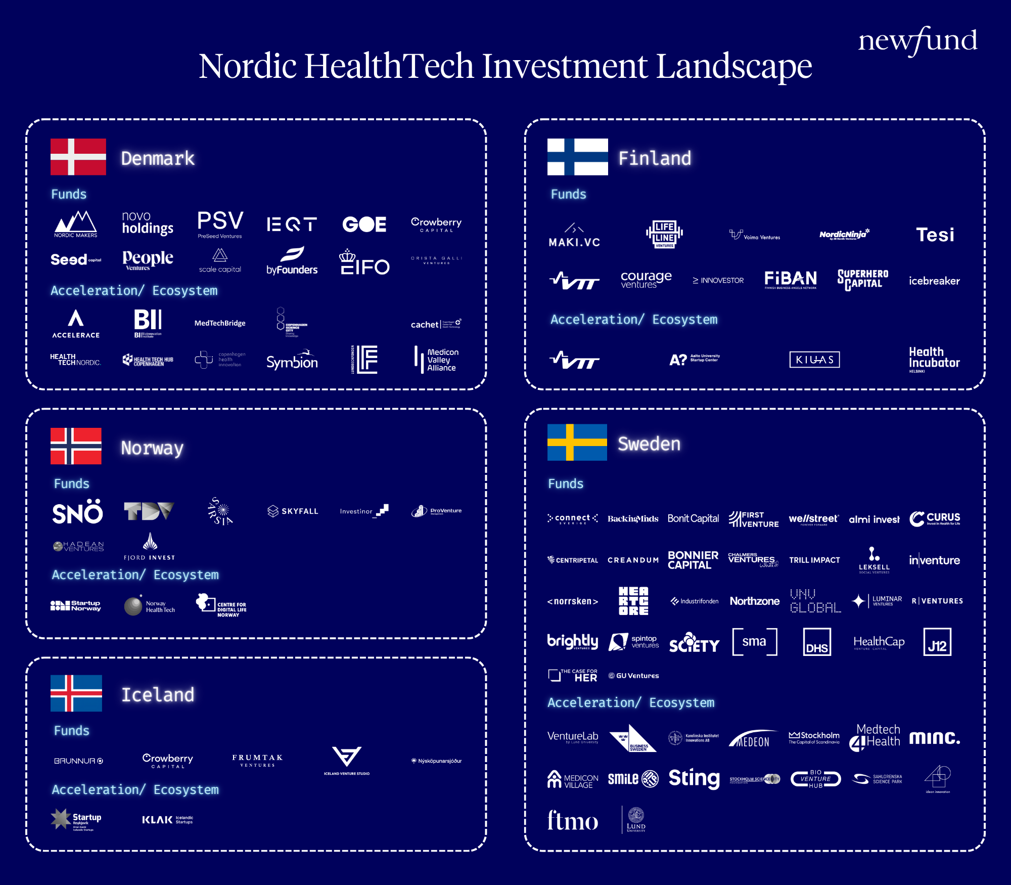 Below, you'll find a mapping of funds and partners to accelerate the development of healthcare startups in the Nordic countries.